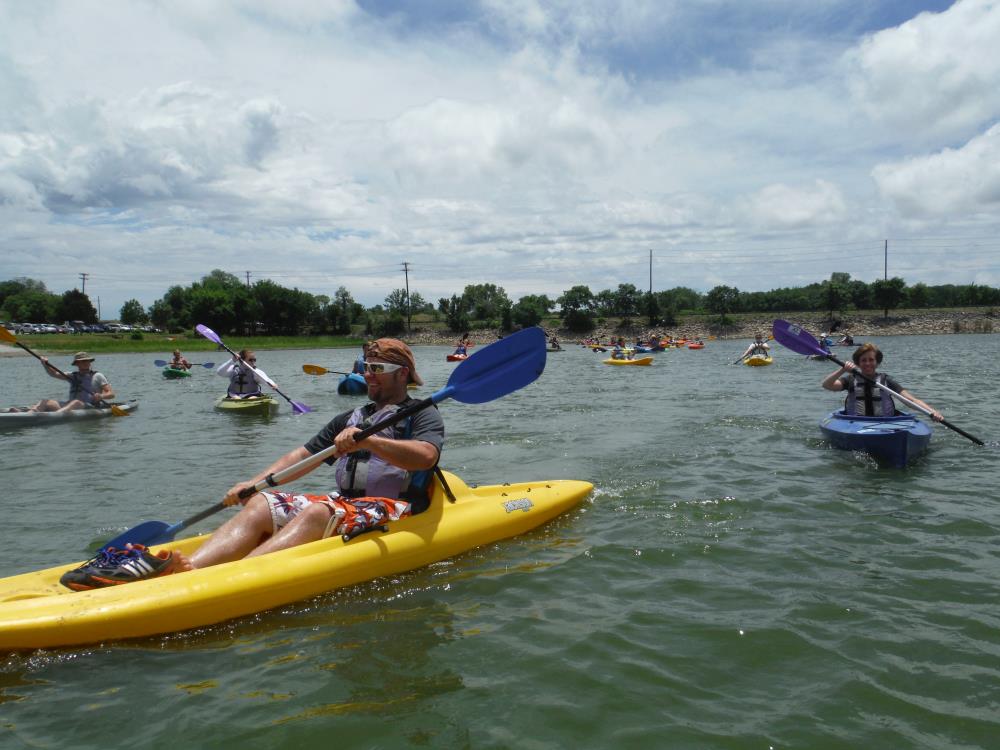 There’s no better way to spend a Sunday afternoon than with Events and Adventures Dallas on the water! We went out to Lake Ray Hubbard and spent the afternoon with our favorite Kayak instructor. We call him Kayak Dave. After we had our lifejackets, boats and general instruction Kayak Dave took us to a minimum wake bay on the edge of Lake Ray Hubbard. He did a really nice job of making sure everyone knew how to paddle for more motion, less work. He pointed out wildlife and taught us cool stuff about the lake we had a leisurely paddle with the wind to the end of the bay then we headed back. Against the wind was bit more challenging so we stopped at a sand bar half way for a break. Jade talked enough smack that she was helped out of the boat via flipping by one of the guys before she got out on her own. I know that payback will be fun to watch. After everyone cooled off in the lake and rehydrated we headed back to the launch area where just about everyone said they would be sore tomorrow. After an early dinner and discussion as to just how outrageous Jade’s retribution is going to be we all headed home for a late nap or early night. Great way to spend any afternoon in Texas!