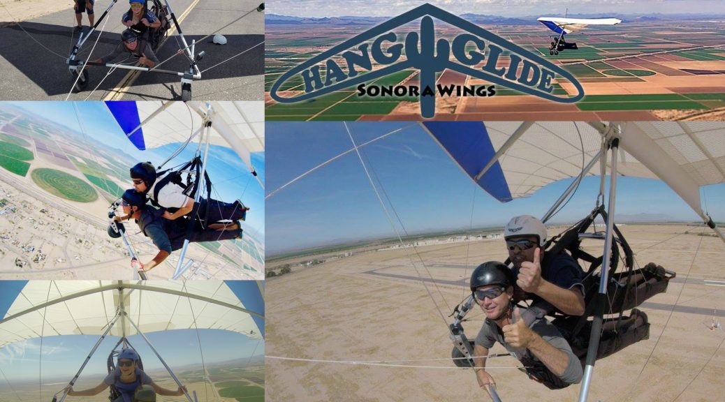 Events & Adventures Phoenix took things to all new heights and spent Sunday soaring above the city. We went hang gliding and experienced a whole new world. High above the zooming cars, city lights, and endless noise we found ourselves at peace among the birds. We were strapped safely and securely into the harness and got the whole thing started with a little help from a tow rope and an airplane specially designed to pull hang gliders.